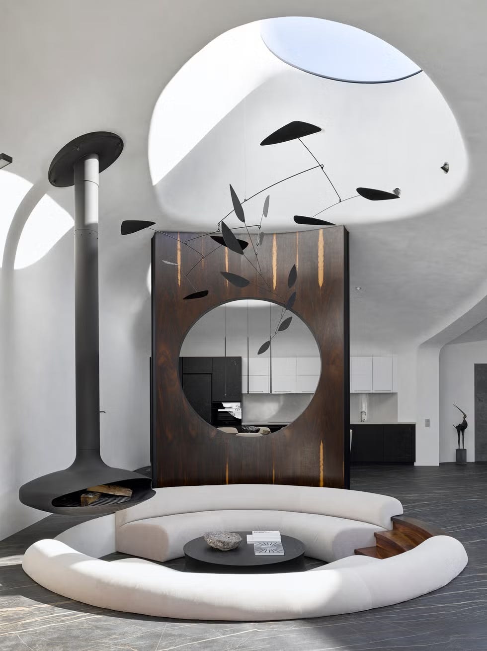 Porque piénsalo: El conversation pit, sunken living-room, magnifica el hecho de reunir unos asientos en torno a una mesa para conversar.