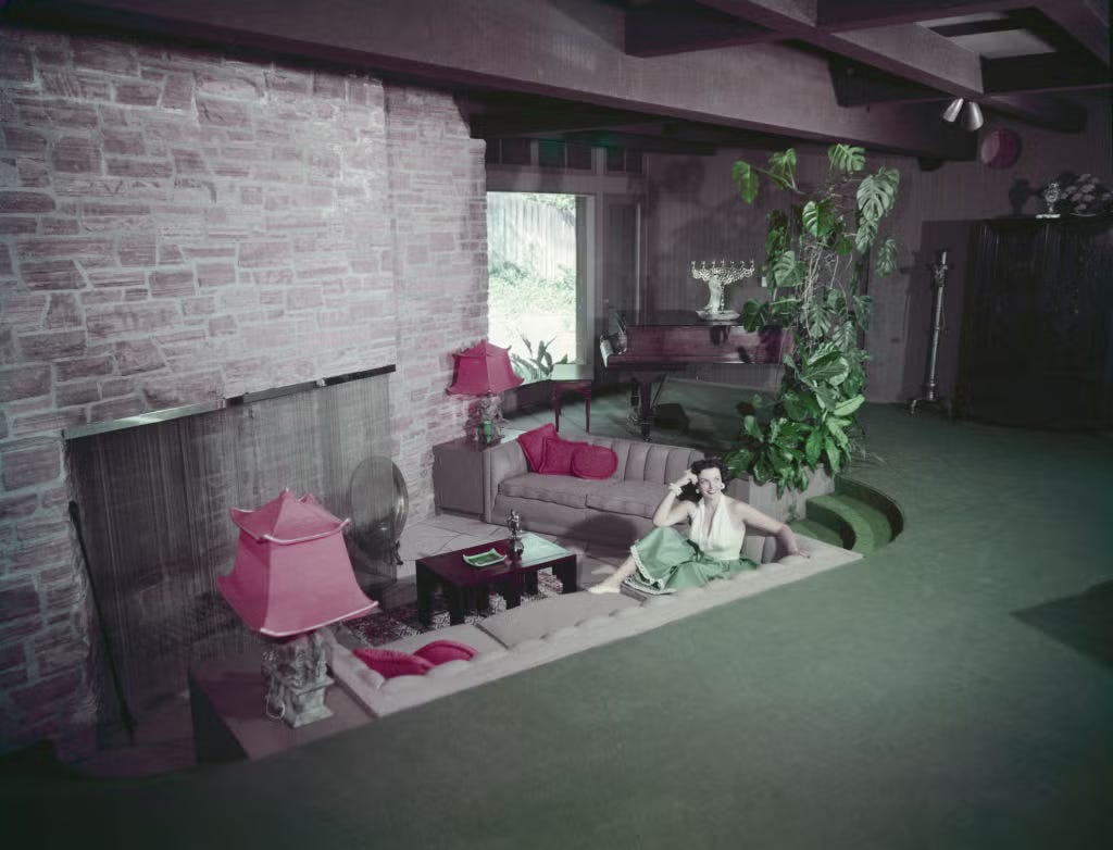 El conversation pit ya no se estila. Los niños y los ancianos (y las borrachas después de la conversación) se caían dentro.